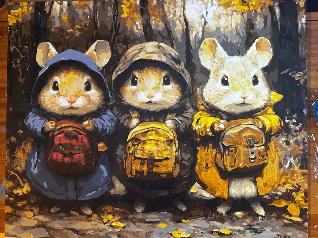 I thoroughly enjoyed painting this piece. This was my first paint by numbers, and I enjoyed it much more than I thought I would. I would recommend going dark to light, or light to dark, but stick with the pattern. It took me about 45ish hours to finish this. I picked up the pace closer to the end, but I was getting the hang of the brushes by then. Like I said this is my first painting so for those who are more experienced I’m sure it won’t take as long. I stretched the canvas before I started, and I think that helped a lot. The paint is in good quality but for what you’re paying I wouldn’t expect it. I try to keep it covered if I wasn’t using it otherwise it seemed to get rather thick and dry out some. I would add a little bit of water in it would go right back to being normal. I would recommend this if you enjoy doing paint-by-numbers or if it’s your first time, it’s definitely worth it. I asked the customer support for guidance and they were very helpful. I would recommend numeralpaint ofc!!