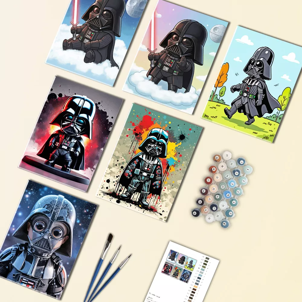 Step into the dark side with this mini paint by numbers design, Darth Vader. Deep blacks, glowing red lightsabers, and iconic galactic details create a dramatic, powerful scene full of intensity. Small yet striking, it’s a relaxing project and a unique handmade gift for fans of legendary Star Wars villains.
