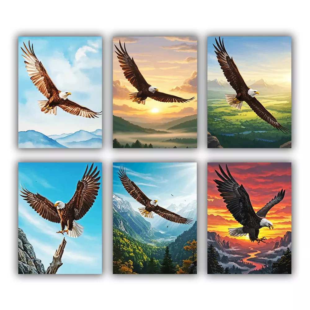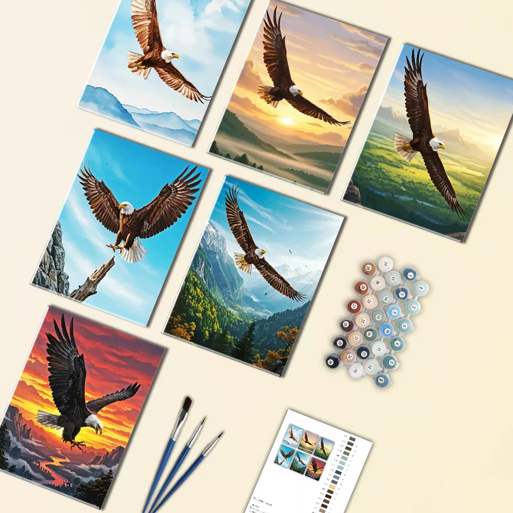 Soar into freedom with this mini paint-by-numbers design, Eagle Flying. Majestic wings, dynamic motion, and dramatic skies capture the power and grace of this magnificent bird. Small yet detailed, it’s a relaxing project and a striking handmade gift for nature and wildlife lovers.