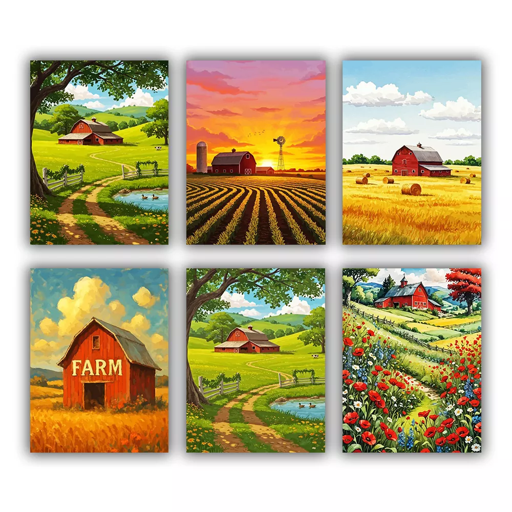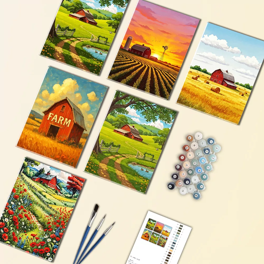 Bring rustic charm to life with this mini paint-by-numbers design, Red Barn. Bold crimson tones and classic farm details create a cozy, picturesque countryside scene. Small yet full of character, it’s a relaxing project and a delightful handmade gift for lovers of rural beauty and farm life.