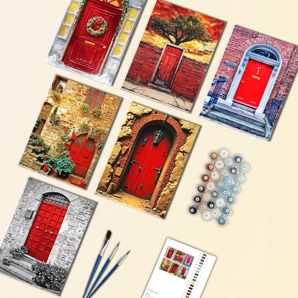 Make a bold statement with this mini paint-by-numbers design, Red Door. Rich crimson tones and charming architectural details create a warm, inviting scene full of character. Small yet eye-catching, it’s a relaxing project and a thoughtful handmade gift for lovers of cozy spaces and timeless style.