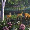 Lay your acrylic canvas out on a flat surface. Organize your paint and apply base layers.