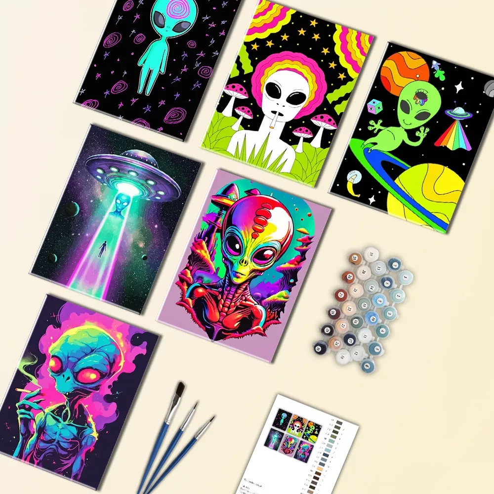 Blast into bold imagination with this mini paint by numbers design, Trippy Alien. Neon hues, swirling patterns, and cosmic details create a vibrant, out-of-this-world scene. Small yet packed with personality, it’s a relaxing project and a unique handmade gift for sci-fi and psychedelic art lovers.