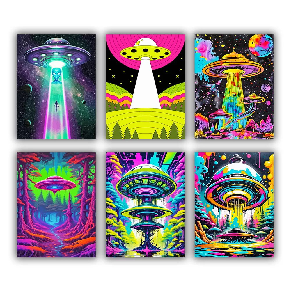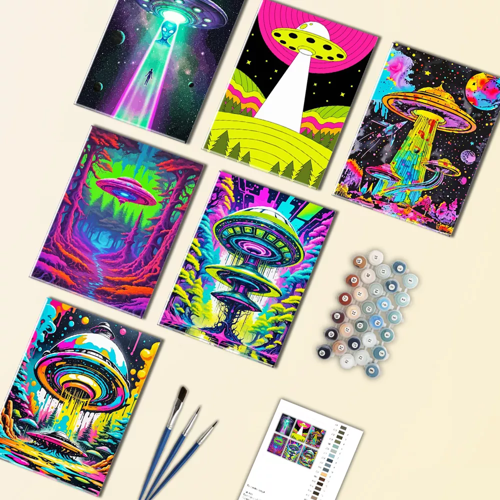 Explore the cosmic unknown with this mini paint-by-numbers design of a trippy UFO surrounded by vibrant, psychedelic colors. Perfect for adding a bold, imaginative touch to any small space, or as a fun and unique handmade gift.