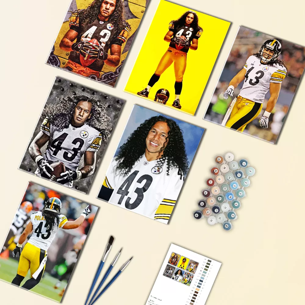 Bring the legend of Troy Polamalu to life with this mini paint by numbers design, where bold colors and dynamic lines capture his energy, iconic hair, and fearless spirit on the field. Small yet striking, it’s a fun, calming projec