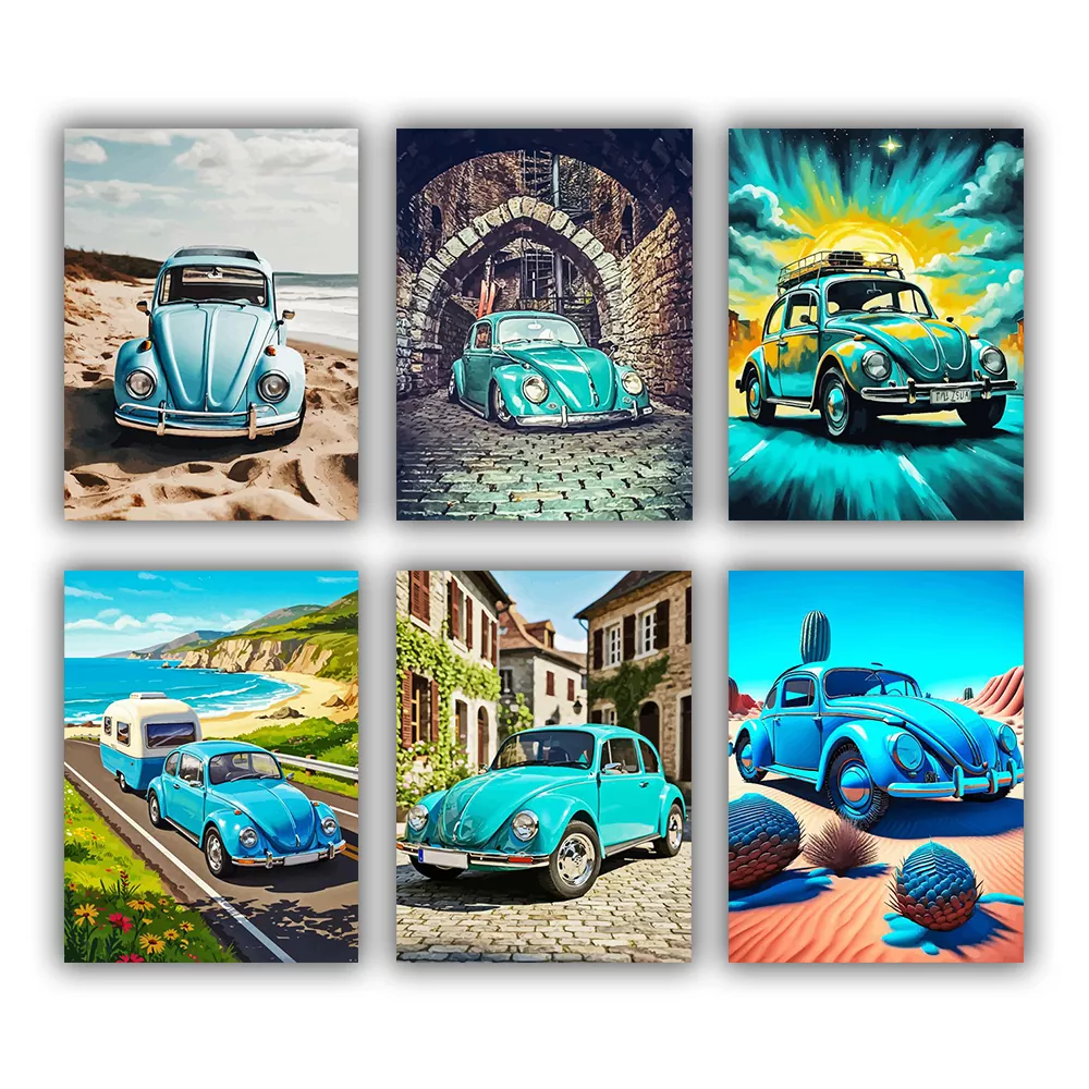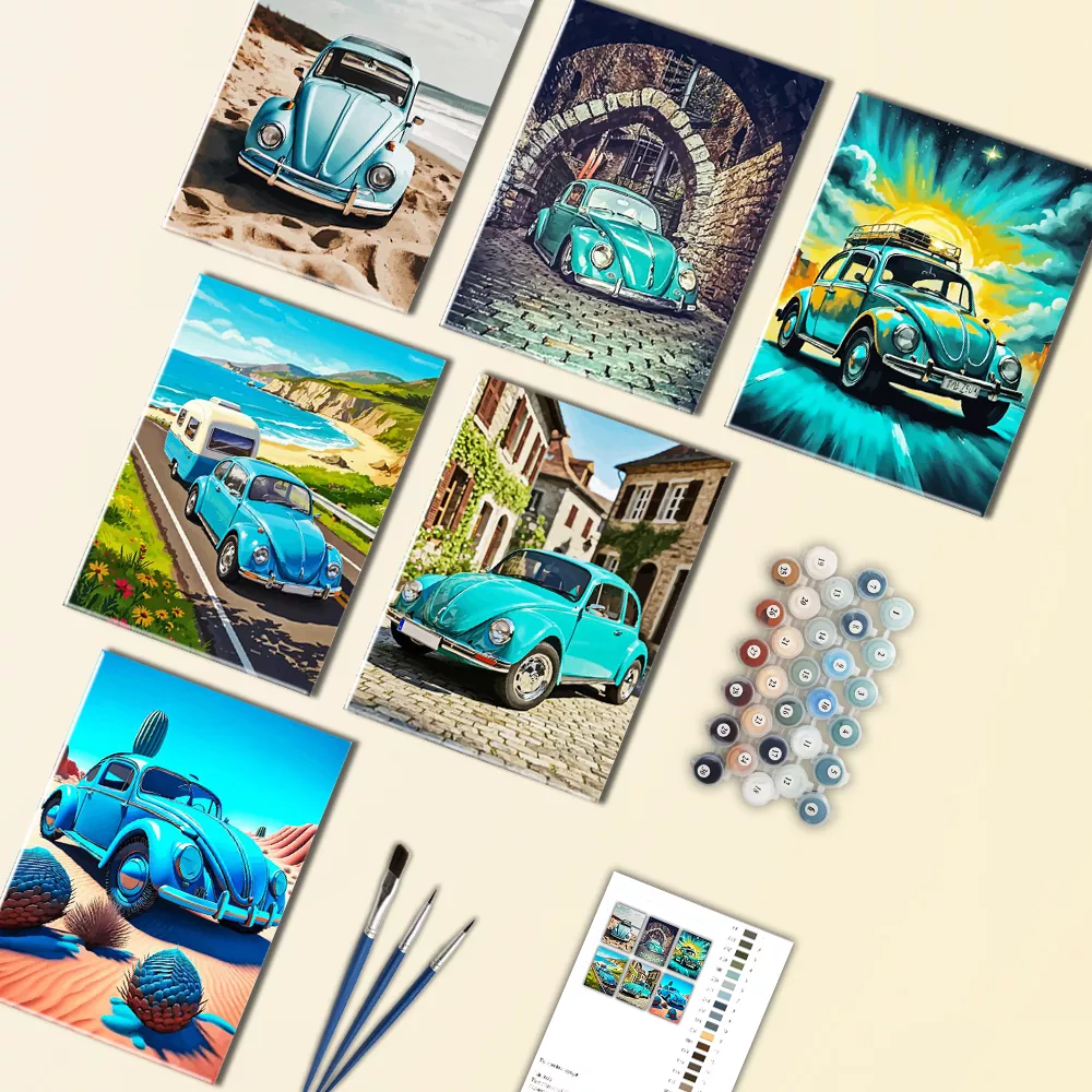 Add a retro pop of color with this mini paint-by-numbers turquoise beetle car design inspired by the iconic Volkswagen Beetle. With vibrant turquoise tones, vintage curves, and charming details, it brings playful nostalgia to any small space. A relaxing project and a fun handmade gift for classic car lovers.