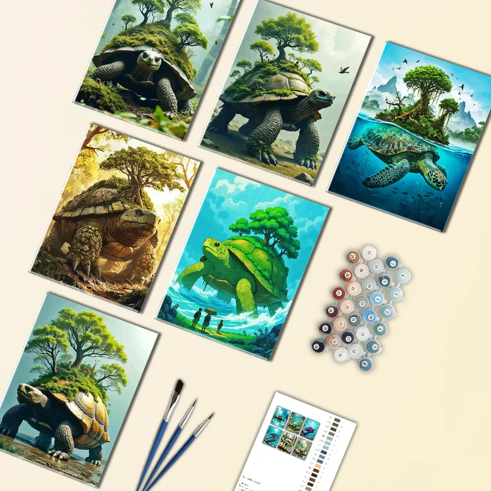 Add a whimsical touch with this mini paint-by-numbers turtle with trees on back design. With earthy greens, rich browns, and imaginative nature details, it creates a magical, storybook scene. Small yet full of charm and creativity, it’s a relaxing project and a unique handmade gift for nature lovers.