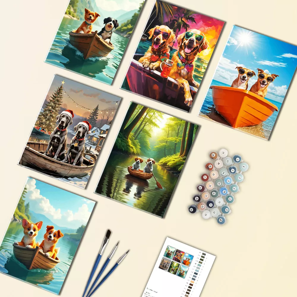 Set sail on a charming adventure with this mini paint-by-numbers Two Dogs in a Boat design. Featuring playful pups, gentle water tones, and a serene scene, it captures a delightful moment on the water. Small yet full of personality, it’s a relaxing project and a perfect handmade gift for dog and nature lovers alike.