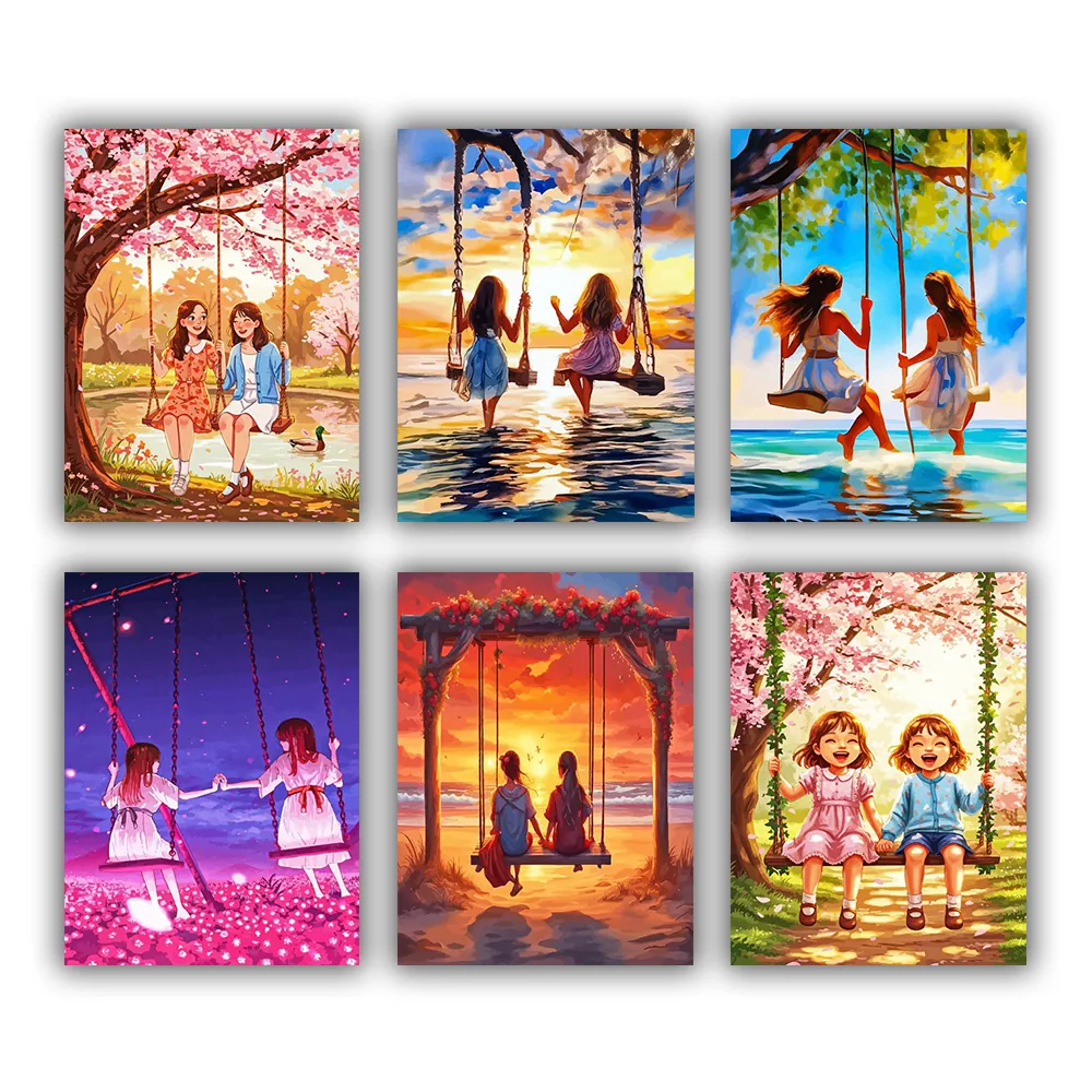 Celebrate friendship with this mini paint-by-numbers design of two friends sharing a joyful moment on a swing. With soft, playful colors and heartwarming details, this charming piece brightens any small space and makes a thoughtful handmade gift.