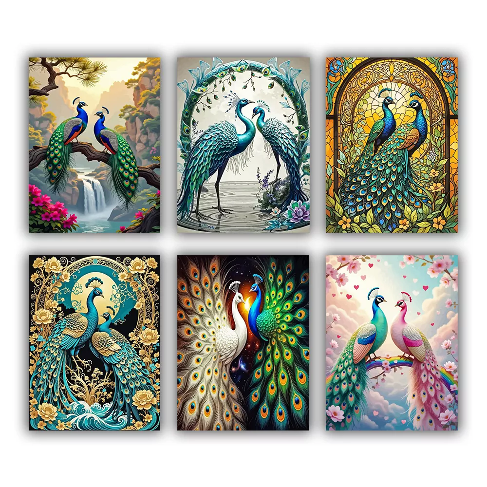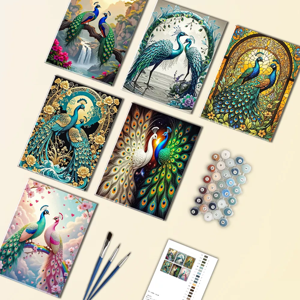 Create a beautiful mini paint-by-numbers peacock featuring vibrant blues, rich greens, and elegant feather details. This eye-catching design adds charm to any small space and makes a thoughtful handmade gift.